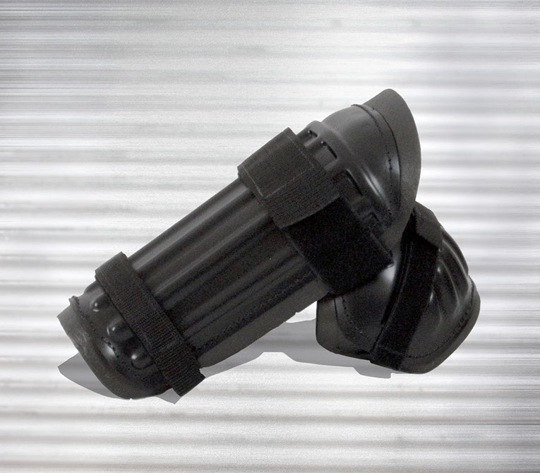 - Lined with air channeled, fire retardant polyethylene foam and held on the body by a combination of tape, elastic and Velcro® which are securely hand stitched to the shells and allow the best possible fit and levels of comfort