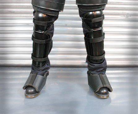 - Lined with air channeled, fire retardant polyethylene foam and held on the body by a combination of tape, elastic and Velcro® which are securely hand stitched to the shells and allow the best possible fit and levels of comfort