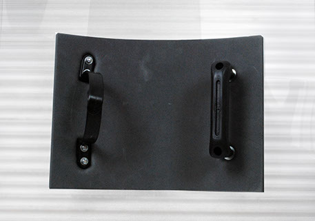 This handle system uses a hook mechanism with two supporting D handles for increased impact resistance. Manufactured with a high density foam pad for extra comfort and protection.