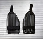 - Lined with air channeled, fire retardant polyethylene foam and held on the body by a combination of tape, elastic and Velcro® which are securely hand stitched to the shells and allow the best possible fit and levels of comfort